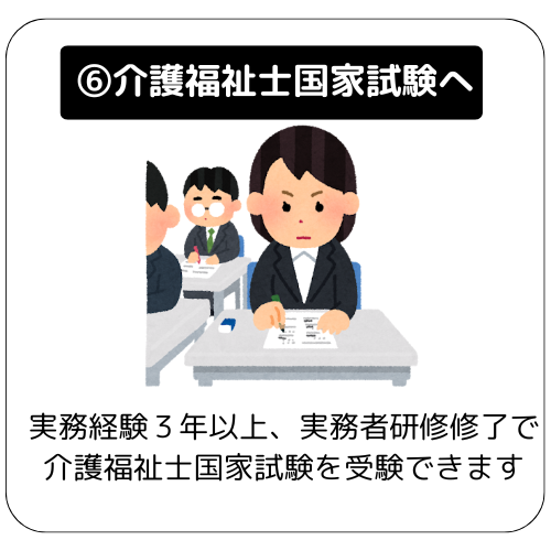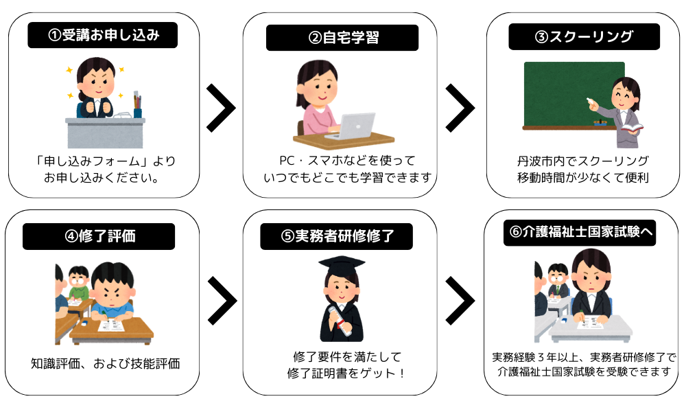 研修期間はトータルで半年間となります。全過程を修了した方に「修了証明書」を郵送にてお渡しします。修了証明書は介護福祉士国家試験を受験する際に必要となります。